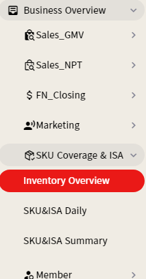 D2C Dashboard > Business Overview > SKU Coverage & ISA > Inventory Overview