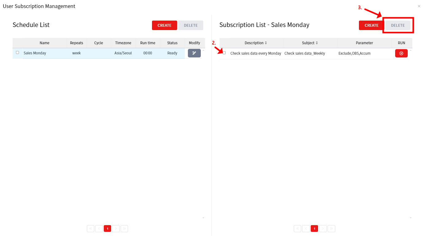 3. Click the DELETE button to unsubscribe