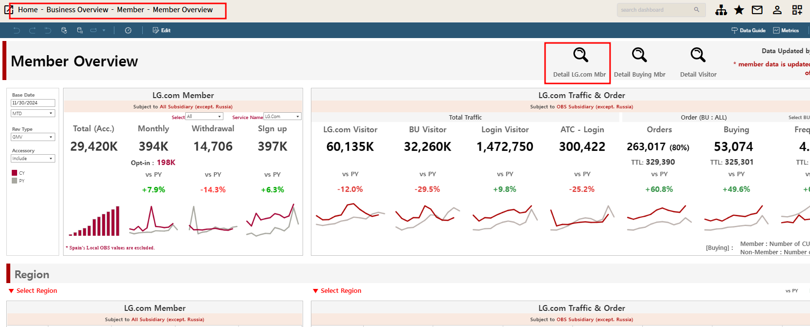 2. You can download data using cross tab function or go to 'Detail LG.com Mbr' page and then select filters as you wish to extract data.