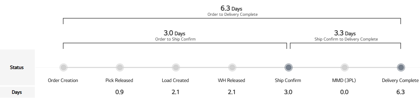 else DATEDIFF("day", [ORD_DATE], [ACTUAL_SHP_DATE]) end - Ship Confirm to Delivery Complete : AVG([ORD_2_DEL]) - AVG([ORD_2_SHIP])