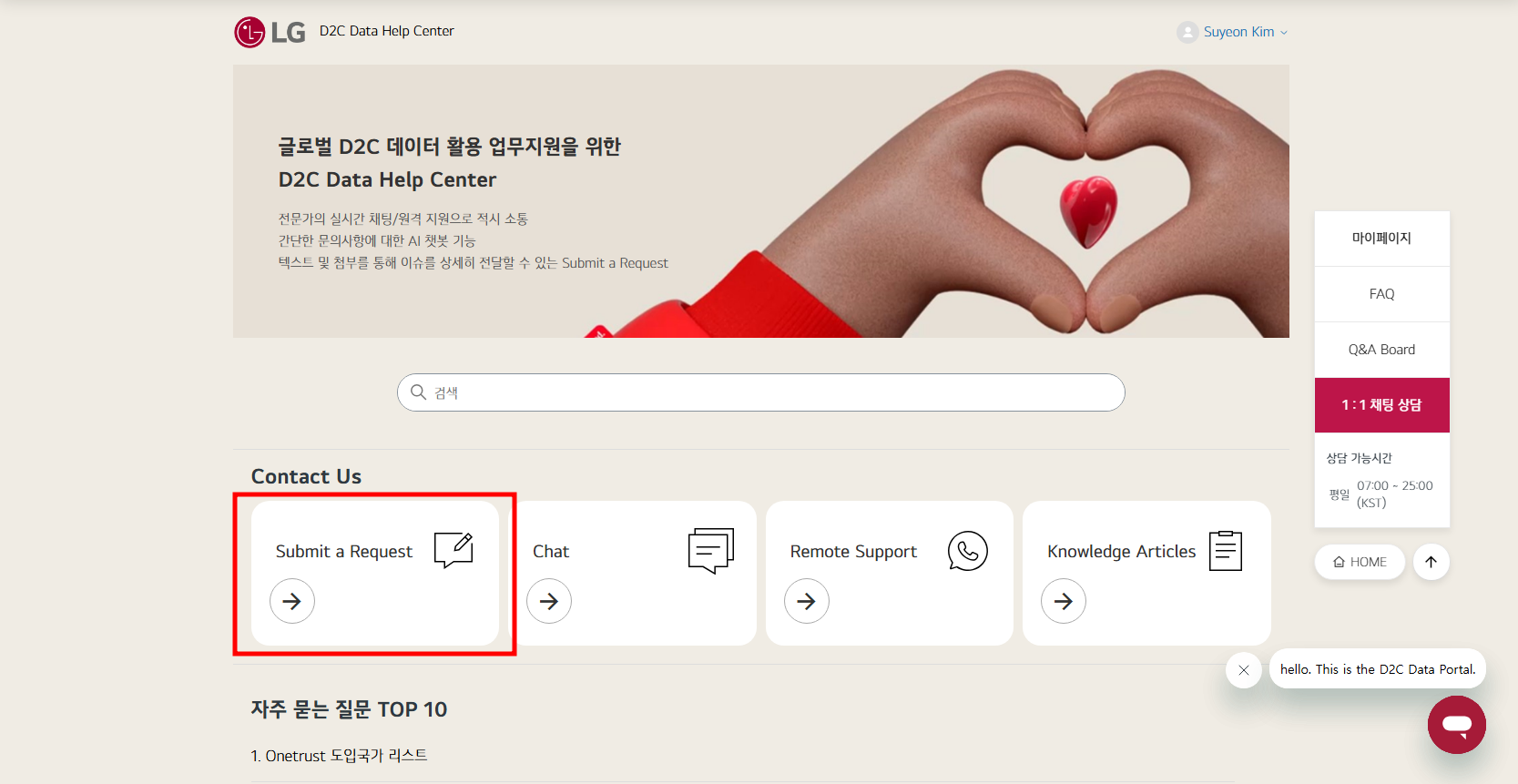 1. After accessing the D2C Data Help Center, please click Submit a request.