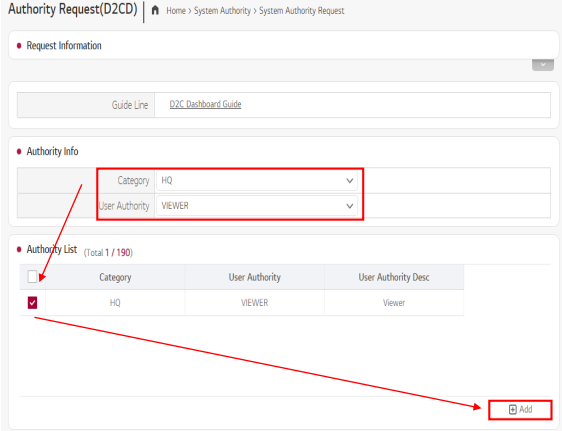 4. Category, User Authority 권한 설정 후 Add 버튼 클릭