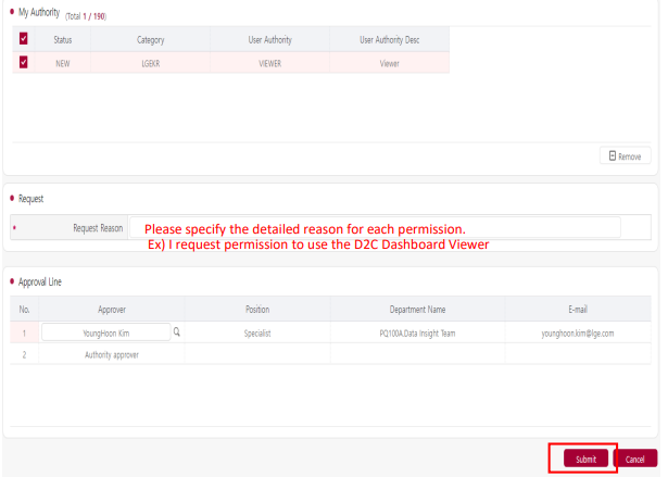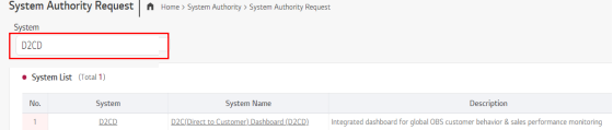 Steps : EP 접속 – System Map – IAM(전사 권한/ 계정 관리) – System Authority – System Authority Request – D2CD 클릭 – 권한 신청